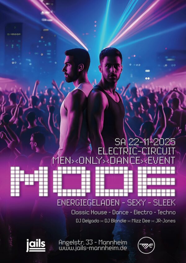 Das nächste MEN* ONLY DANCE EVENT findet am 22. November 2025 statt. Alle weiteren Informationen sowie kommende Termine und Links zum Ticket-Vorverkauf findet Ihr auf der Party-Seite.